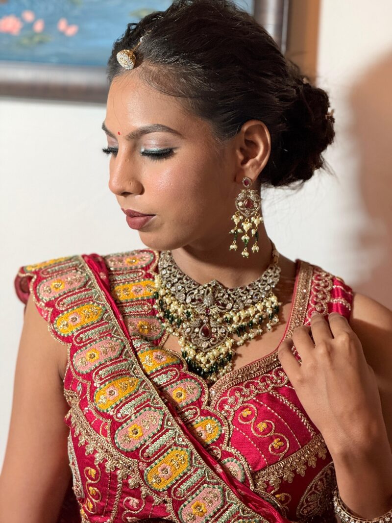 - Moissanite & Polki Perfection: Crafted with high-quality Moissanite stones that replicate the sparkle and brilliance of diamonds, set alongside traditional Polki work.